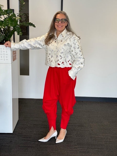 For a more refined, edgy look, pair them with my Joy Jacket—a timeless classic—and watch how these pants create a stunning hourglass shape. They’re not just easy to style; they’re incredibly flattering. And because they’re part of a limited edition run, they’re a unique piece you won’t want to miss.