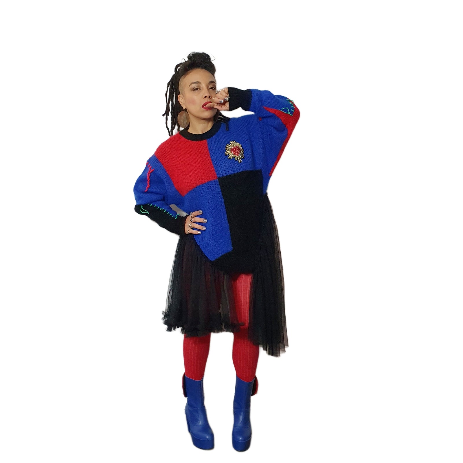 In my Melbourne atelier, wasn't about sketches but a tactile exploration with each jumper, chosen for its unique fibers—from snug wool to the luxurious softness of angora. Guided by intuition, I weave these materials into one-of-a-kind pieces that blend whimsy with timeless elegance. Vintage buttons, collected over years, add a touch of nostalgia, each one carrying its own story. Recycled jewelry pieces and cherished brooches and patches find new purpose, embodying a commitment to unique and timeless style.